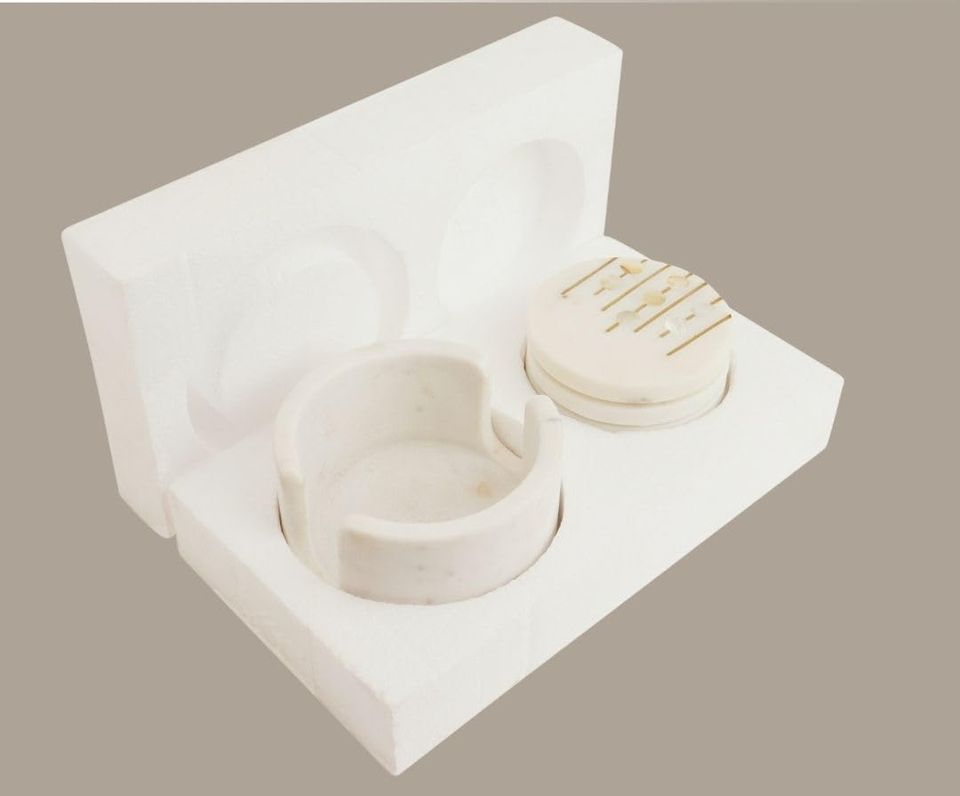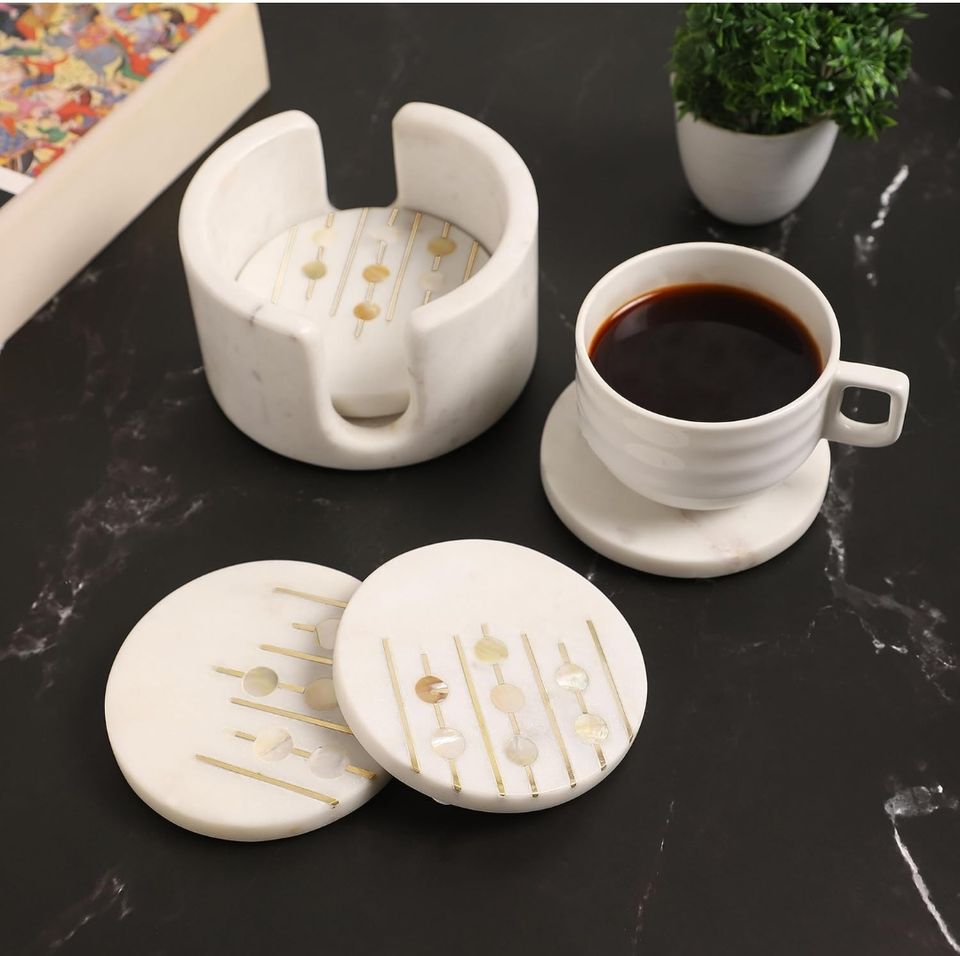 จานรองแก้วหินหินอ่อนธรรมชาติสุดหรูพร้อมลูกปัดทองเหลืองและแผ่นรองจานและแผ่นรองจานสำหรับเครื่องใช้บนโต๊ะอาหารในบ้านและร้านอาหาร