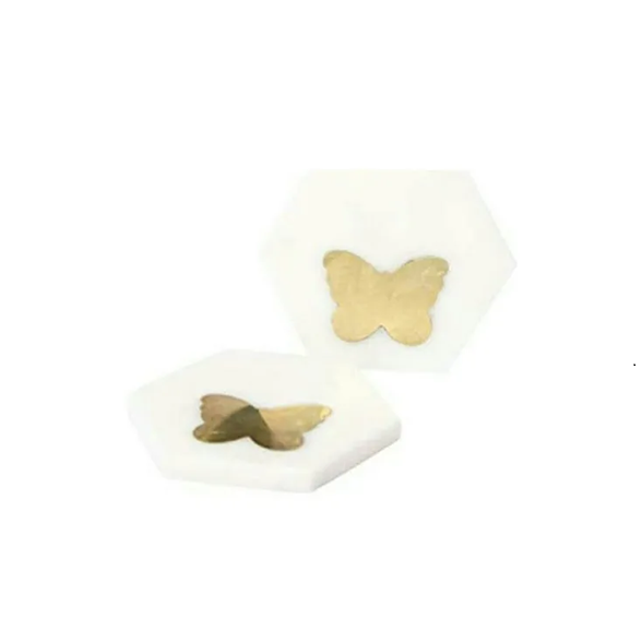 ที่รองแก้วหินอ่อนหินธรรมชาติทรงหกเหลี่ยมที่รองแก้วของขวัญสำหรับงานเลี้ยงขึ้นบ้านใหม่ของตกแต่งโรงแรม