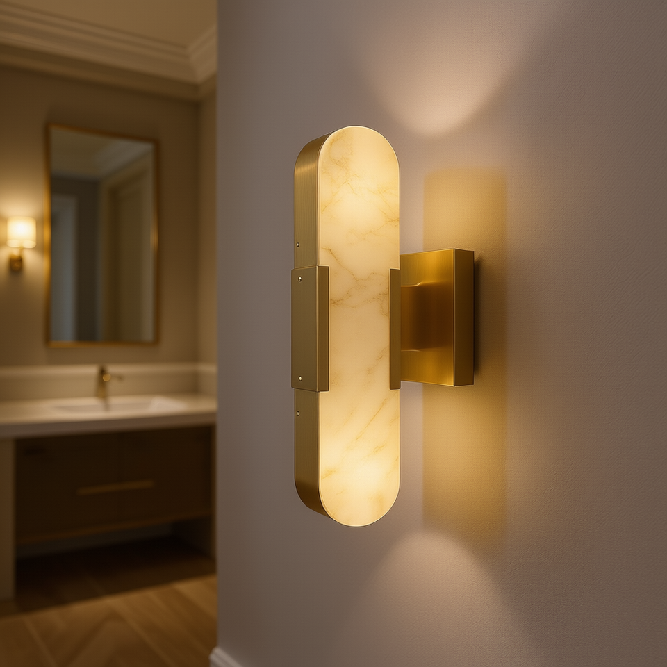 โคมไฟติดผนังหินอ่อนธรรมชาติสีทอง 19.7 นิ้ว แสงสว่างภายในอาคารทันสมัยสำหรับห้องน้ำ ห้องนอน ห้องนั่งเล่น ทางเดิน บันได
