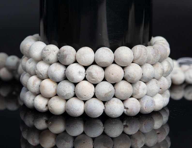 ลูกปัดหินดรูซี่สีขาวด้านธรรมชาติ เกรดคุณภาพ รูปทรงกลม สำหรับทำเครื่องประดับ สร้อยข้อมือ สร้อยคอ งานฝีมือ DIY