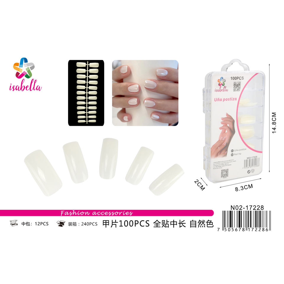 Natural Medium Long 100-Piece Women's Fashion Trendy Cute Acrylic False Nails Stylish Elegant Manicure Accessory N02-17228