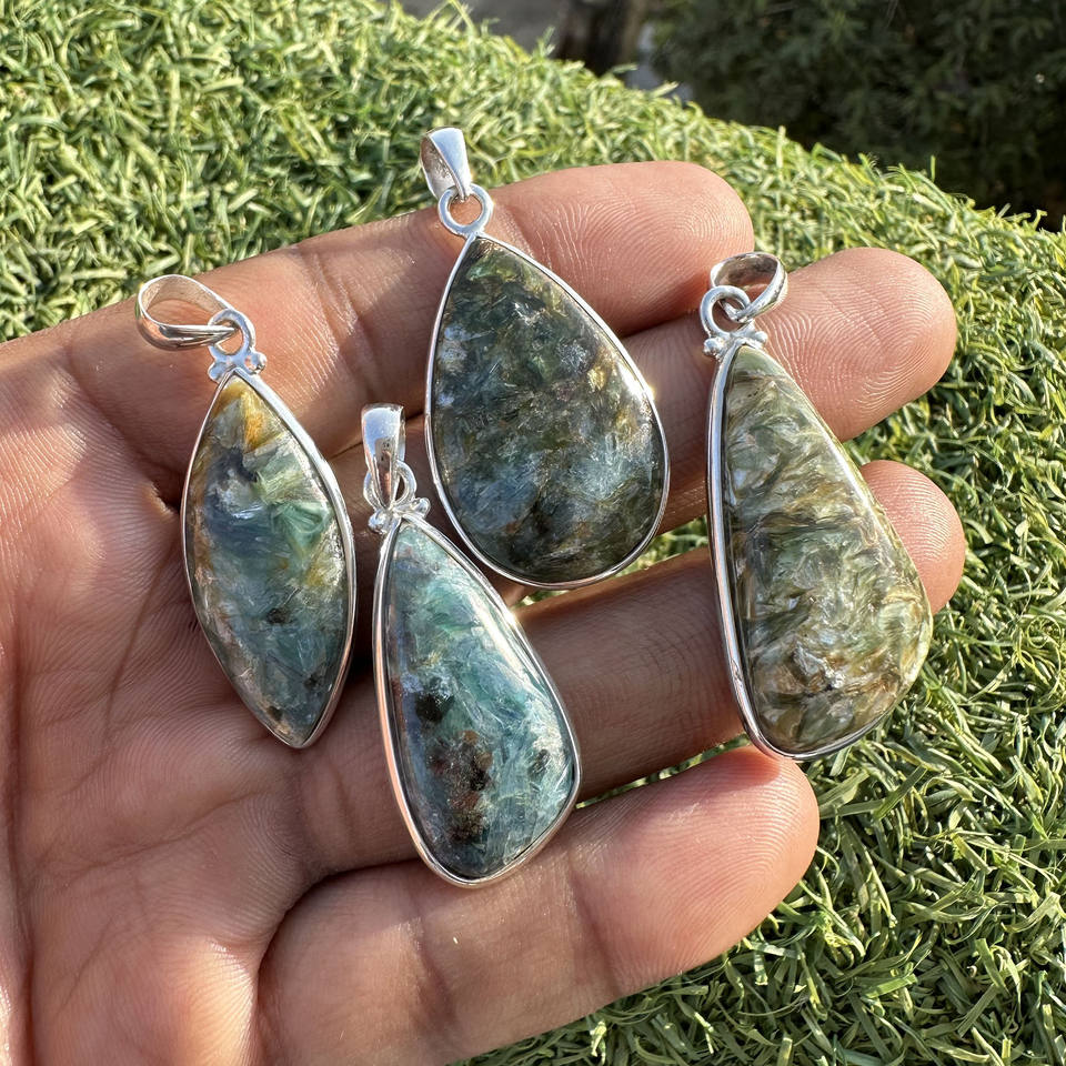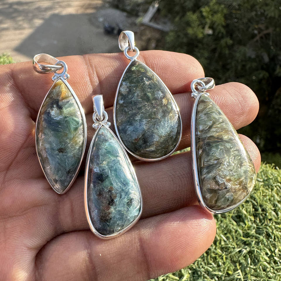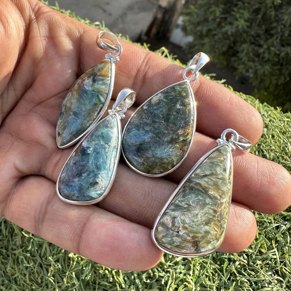 จี้คิยาไนต์ธรรมชาติ เงินแท้ 925 ขายส่ง เครื่องประดับพลอยคิยาไนต์สีเขียวแท้สำหรับผู้หญิง
