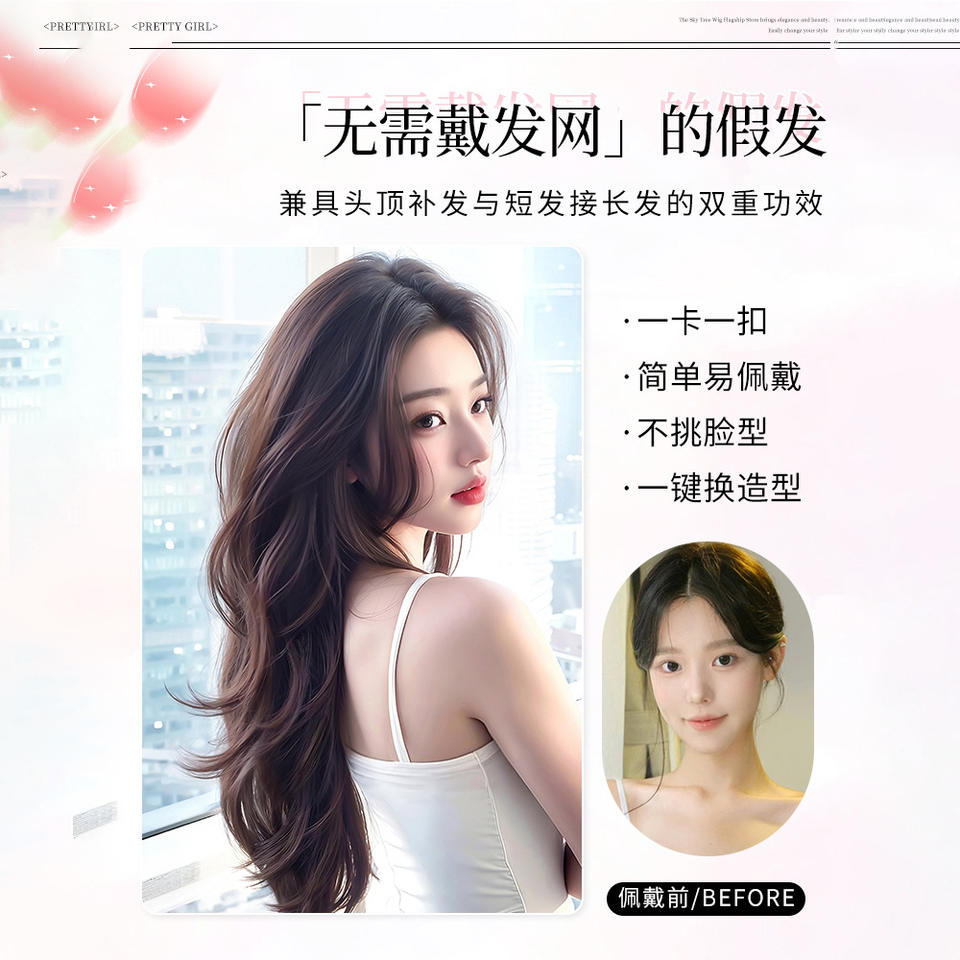 วิกผมยาวหยิกแบบธรรมชาติ คล้ายผมจริง คลุมทั้งศีรษะ ทำจากเส้นใยคาเนคาลอนทนความร้อนสูง ไม่มีเชือกผูก ถักด้วยมือ แนวไรผมดูเป็นธรรมชาติ