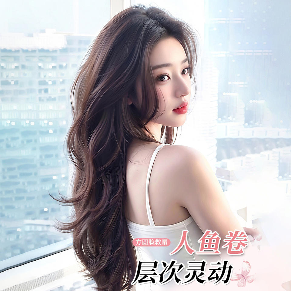 ผมยาวลอนคลายพร้อมหน้าม้าปัดข้างทรงผมวิก
