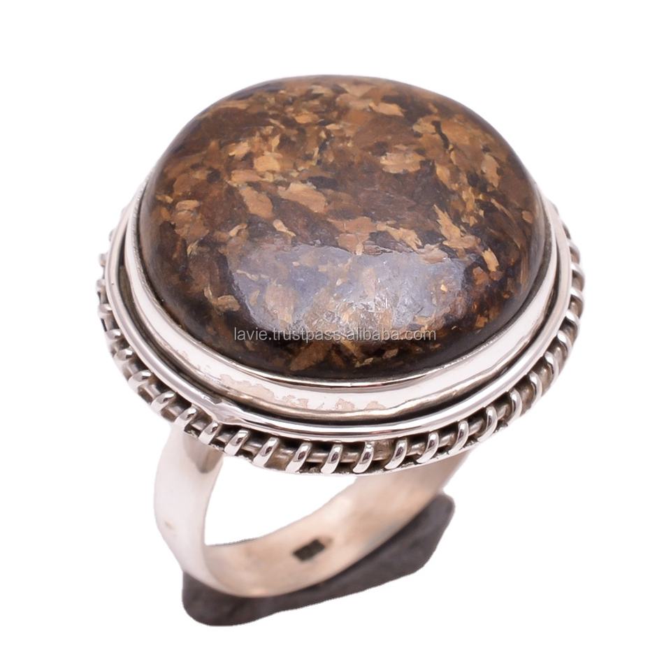 ธรรมชาติเม็กซิกัน Bronzite แจสเปอร์แหวนอินเดียขายส่งเครื่องประดับเงิน925ที่กำหนดเองทำแฮนด์เมดแหวนเงิน
