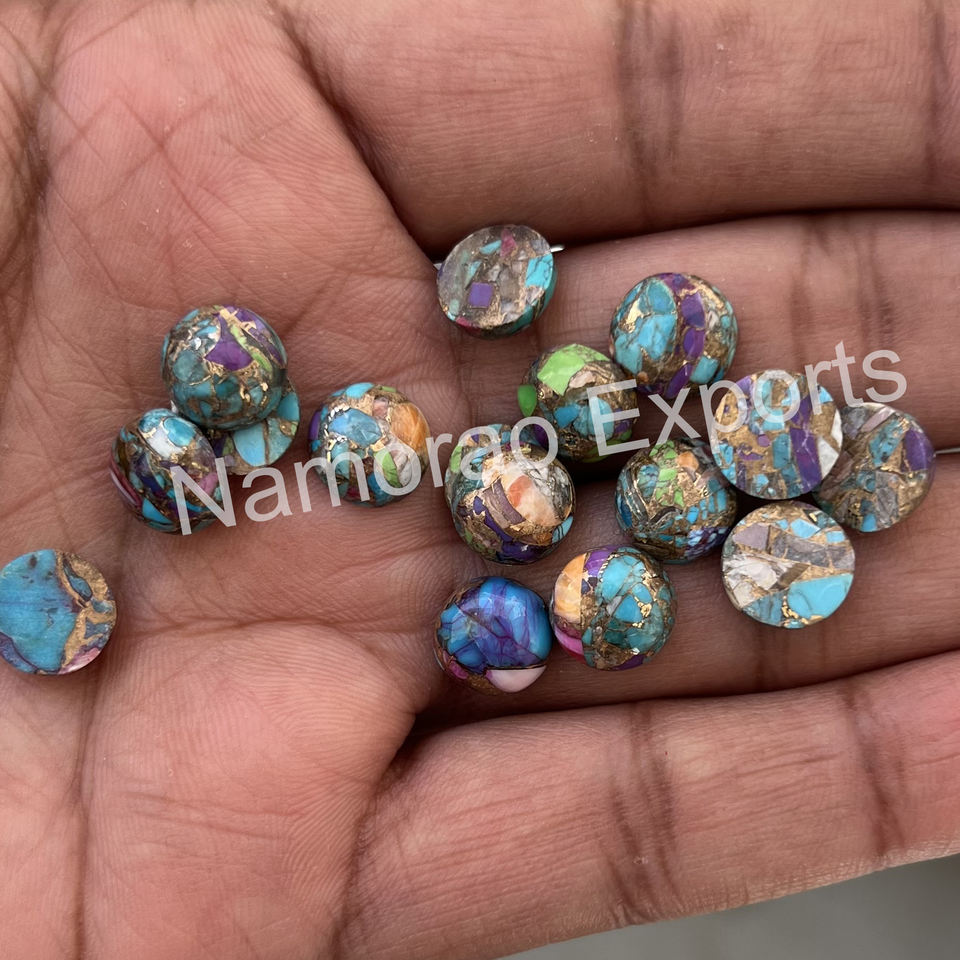 พลอยทองแดงผสมสีเทอร์ควอยส์ธรรมชาติ6x6มม. ทรงกลมมีทุกขนาดให้เลือกเครื่องประดับด้านหลังแบนอัญมณีทำจากหินอัญมณีหลวม