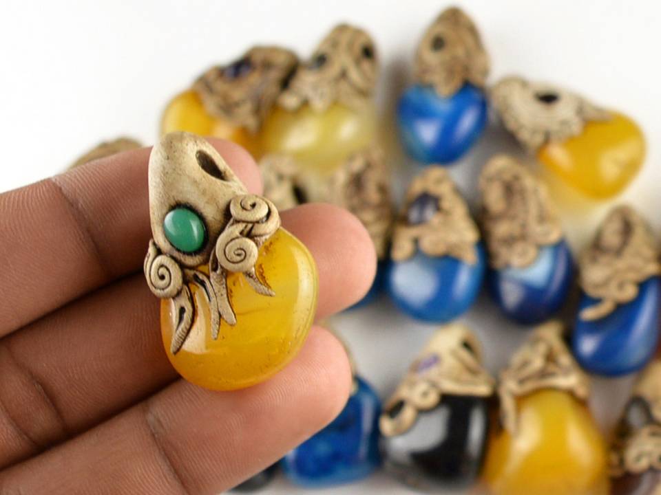 พลอยโอนิกซ์ผสมธรรมชาติแบบกลิ้งสำหรับนอนอัญมณีโบราณจี้ดินโพลิเมอร์สีสวยดีไซน์แบบหลวมทำมือ