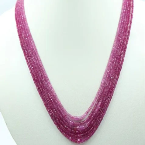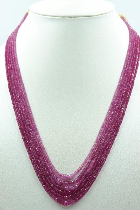 Natural Mogok Ruby Faceted Rondelle Necklace 6 Strands Ruby Sapphire Mogok Ruby Beaded Necklace