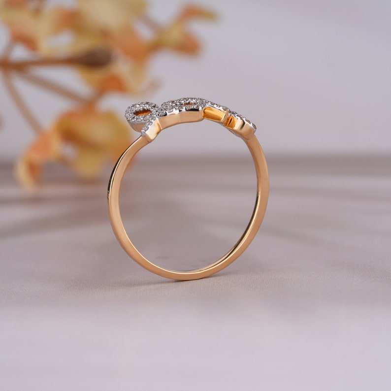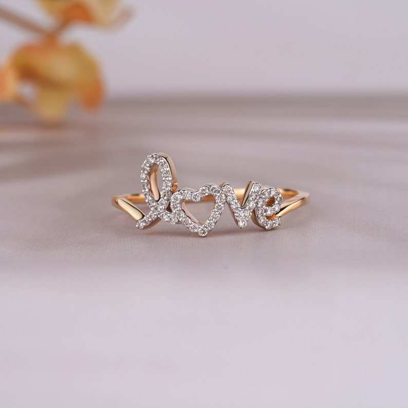 แหวนเพชรมอยสซาไนต์ธรรมชาติ14K แหวนดีไซน์ความรักสีเหลืองทองแหวนโมอิสซาไนต์ธรรมชาติทำด้วยมือตัวอักษรรักแหวนทองของขวัญ