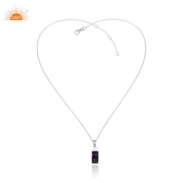 ผู้ค้าส่งเครื่องประดับธรรมชาติ จี้รูปสี่เหลี่ยมผืนผ้าทำจากทองแดงโมฮาเวและพลอยลาพิส จี้เงินแท้ 925 พร้อมสร้อย