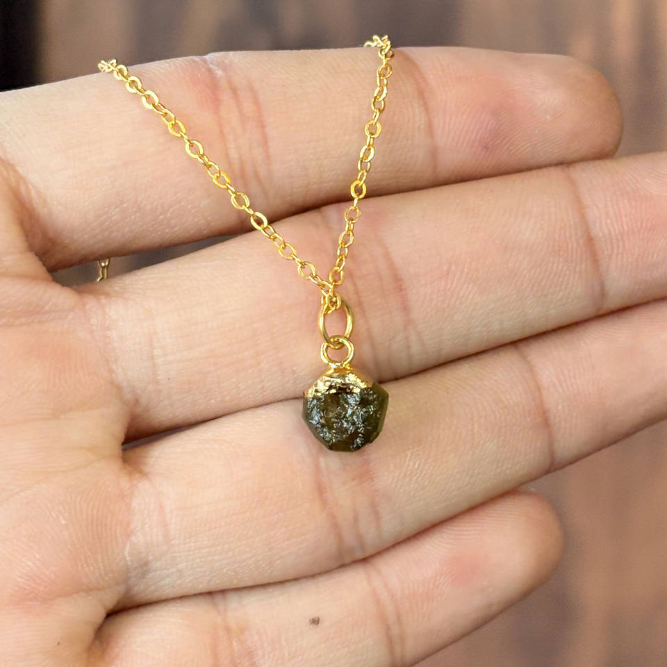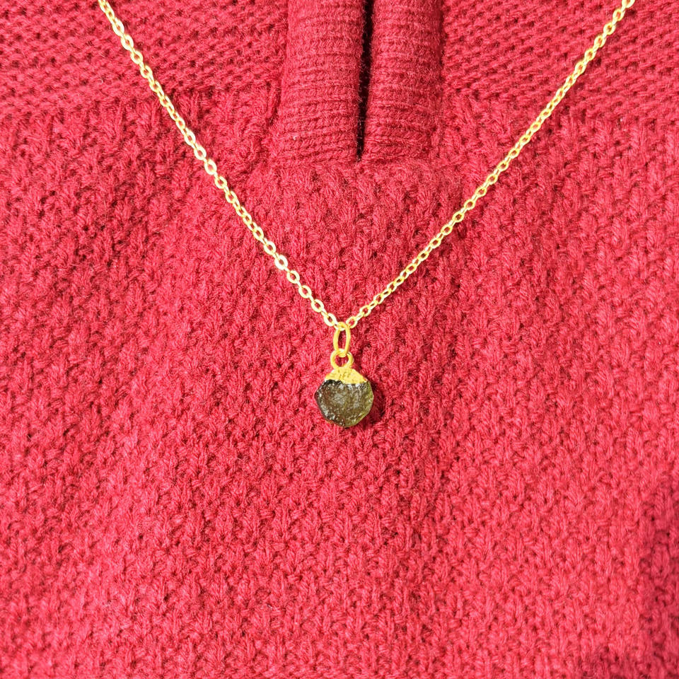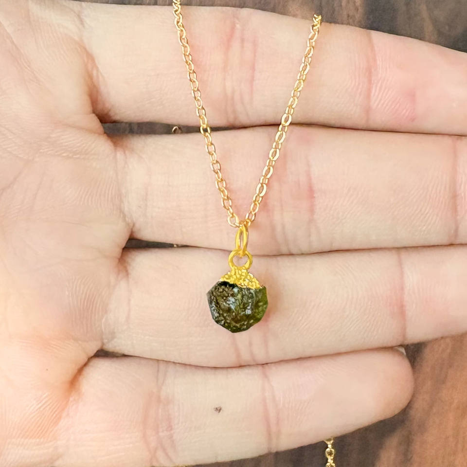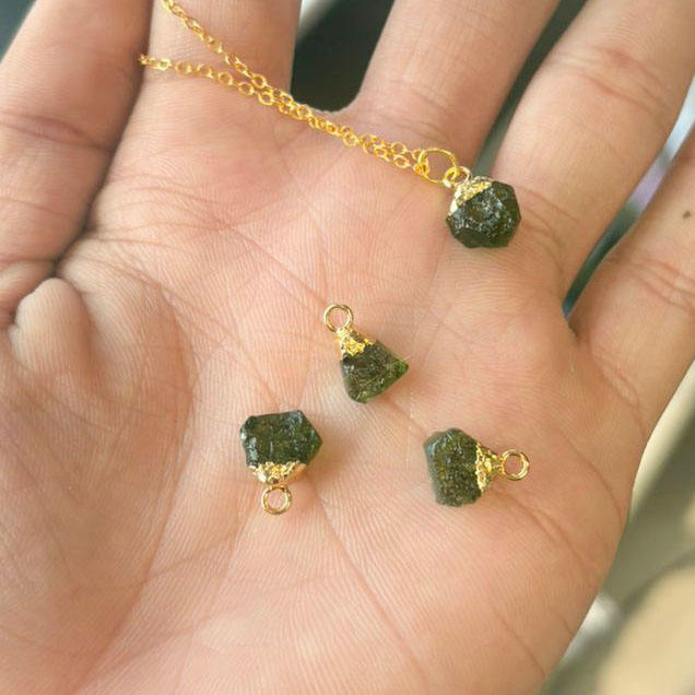 สร้อยคอโมลดาวิทธรรมชาติ | สร้อยคอหินดิบเคลือบทองบนโซ่ชุบทอง, เครื่องประดับบำบัดรักษา, ของขวัญสำหรับแฟนสาว