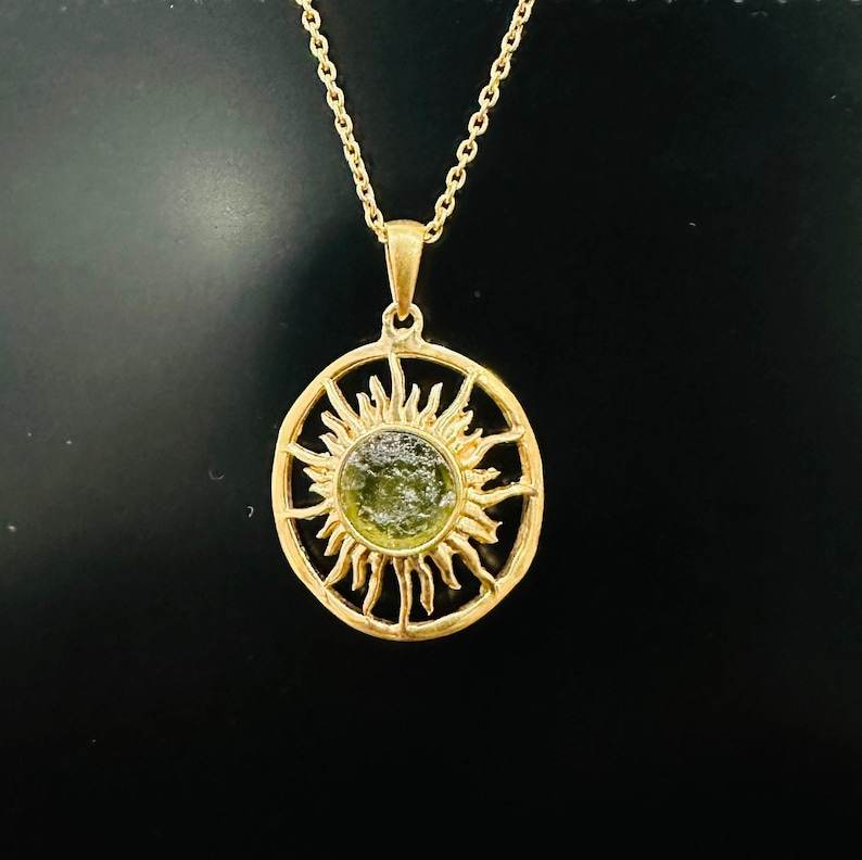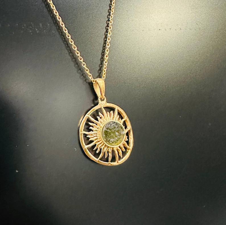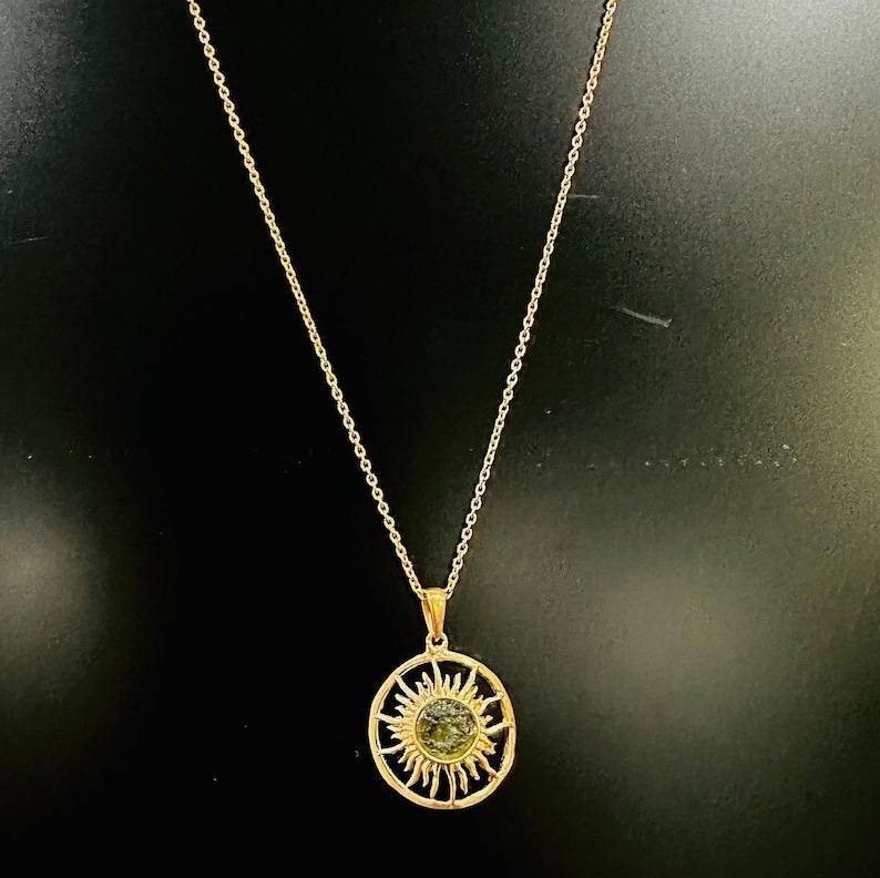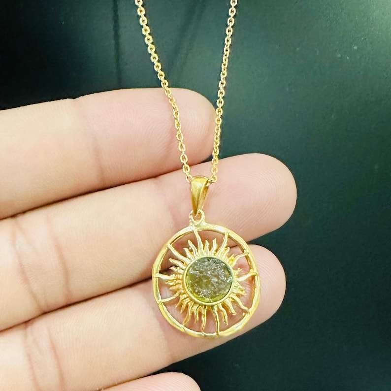 จี้ทอง 14K และเงินประดับโมลดาวิทธรรมชาติทรงดาวสีทรายเปลี่ยนสีได้ พร้อมแหวนหยาบสำหรับบำบัดรักษา ของขวัญวันครบรอบ