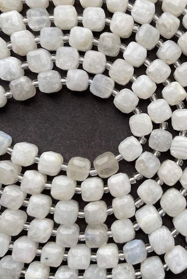 ลูกปัดมูนสโตนธรรมชาติรูปทรงลูกบาศก์ สวยงาม สีขาว คุณภาพสูง สำหรับทำเครื่องประดับ