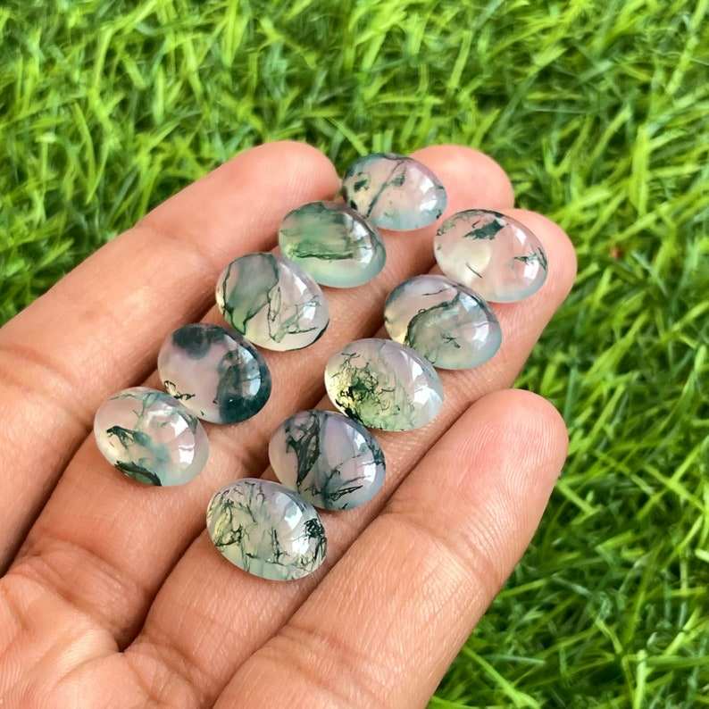 หินโมราโมราอัญมณีธรรมชาติ10ชิ้นทรงรีสำหรับทำเครื่องประดับสร้อยข้อมือจี้แหวน