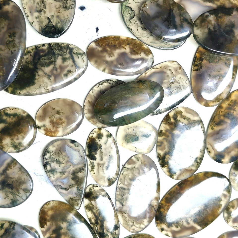 มอสอาเกตทรงหลังเบี้ย เรียบเนียน หินกึ่งมีค่า ขายส่ง ล็อตใหญ่ มอสอาเกตธรรมชาติ หินหลวมทรงหลังเบี้ย ล็อตใหญ่ คริสตัลธรรมชาติ จำนวนมาก