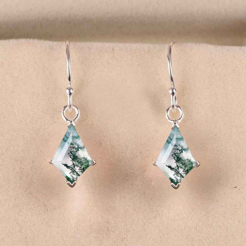 ต่างหูมอสอาเกตทรงว่าว เงินแท้ 925 สไตล์วินเทจ ต่างหูพลอยเจ้าสาวทรงว่าว