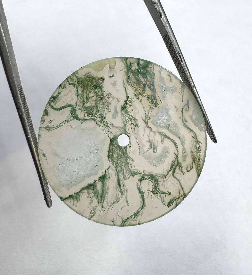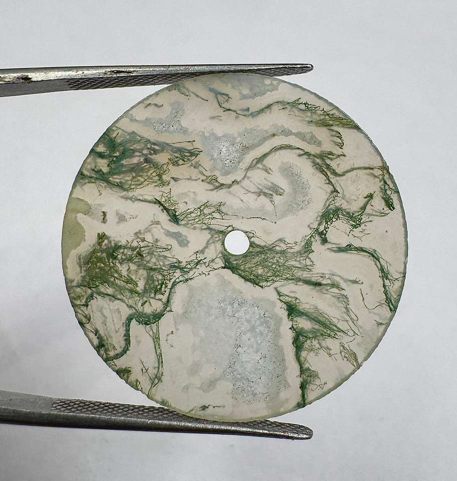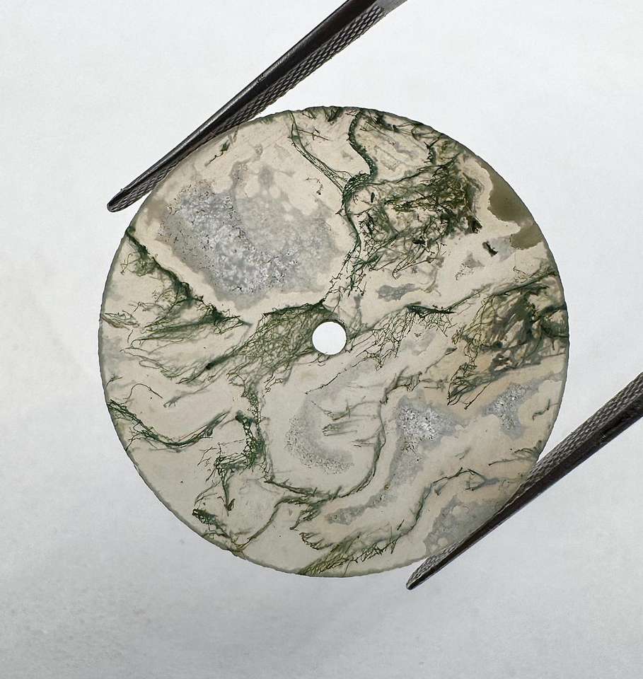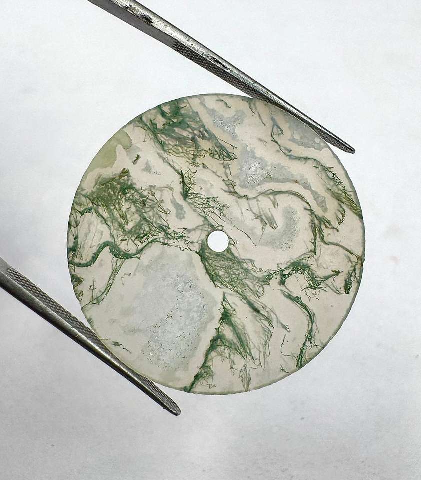 หน้าปัดนาฬิกาหินมอสอาเกตสีขาวทรงแบนขนาด 28.5 มม. หนา 0.60 มม. ขัดเงา (อัญมณีและหิน) a K Gems GMC-1019W