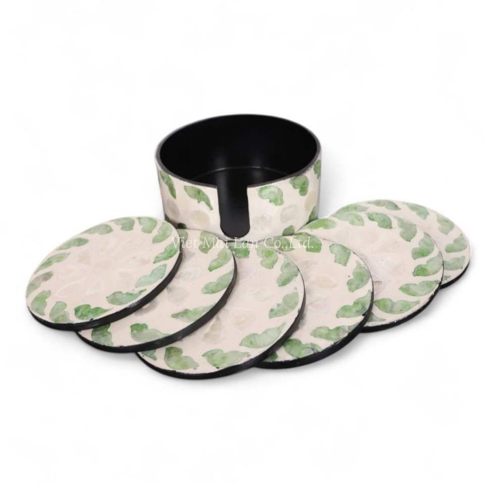 แผ่นรองแก้วทำจากเปลือกหอยมุกธรรมชาติ สำหรับใช้ในชีวิตประจำวันและตกแต่งโต๊ะในพื้นที่อยู่อาศัยสมัยใหม่