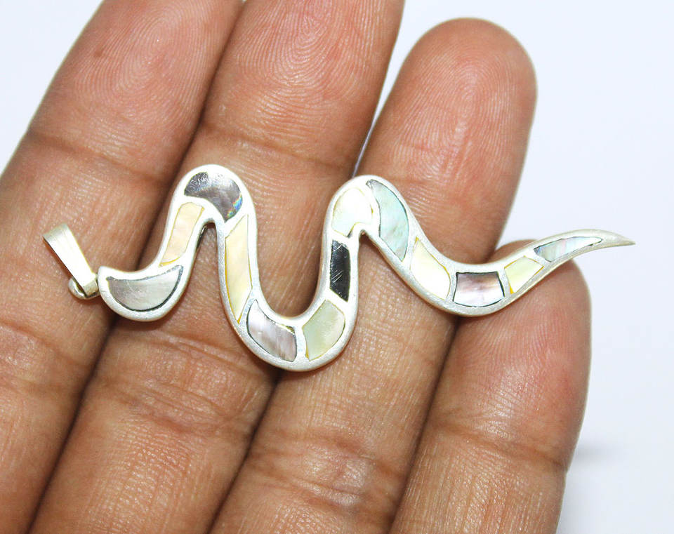 Product Name:Mother Of Pearl 925 Silver Snake Pendant