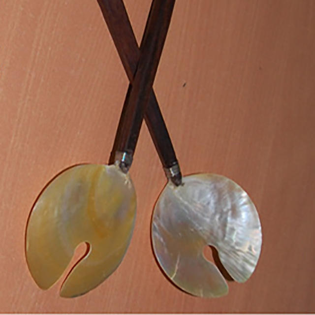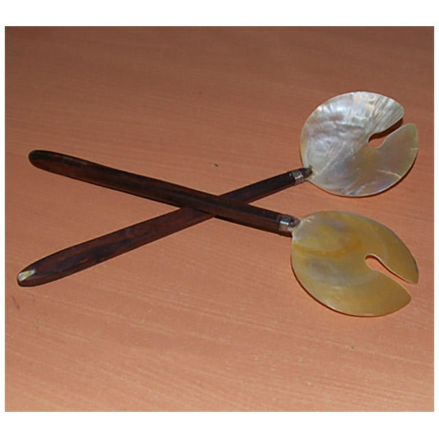 ช้อนและส้อมยาวทำจากเปลือกหอยมุกธรรมชาติพร้อมด้ามไม้ เครื่องประดับเปลือกหอย เหมาะสำหรับเป็นของขวัญในโอกาสต่างๆ