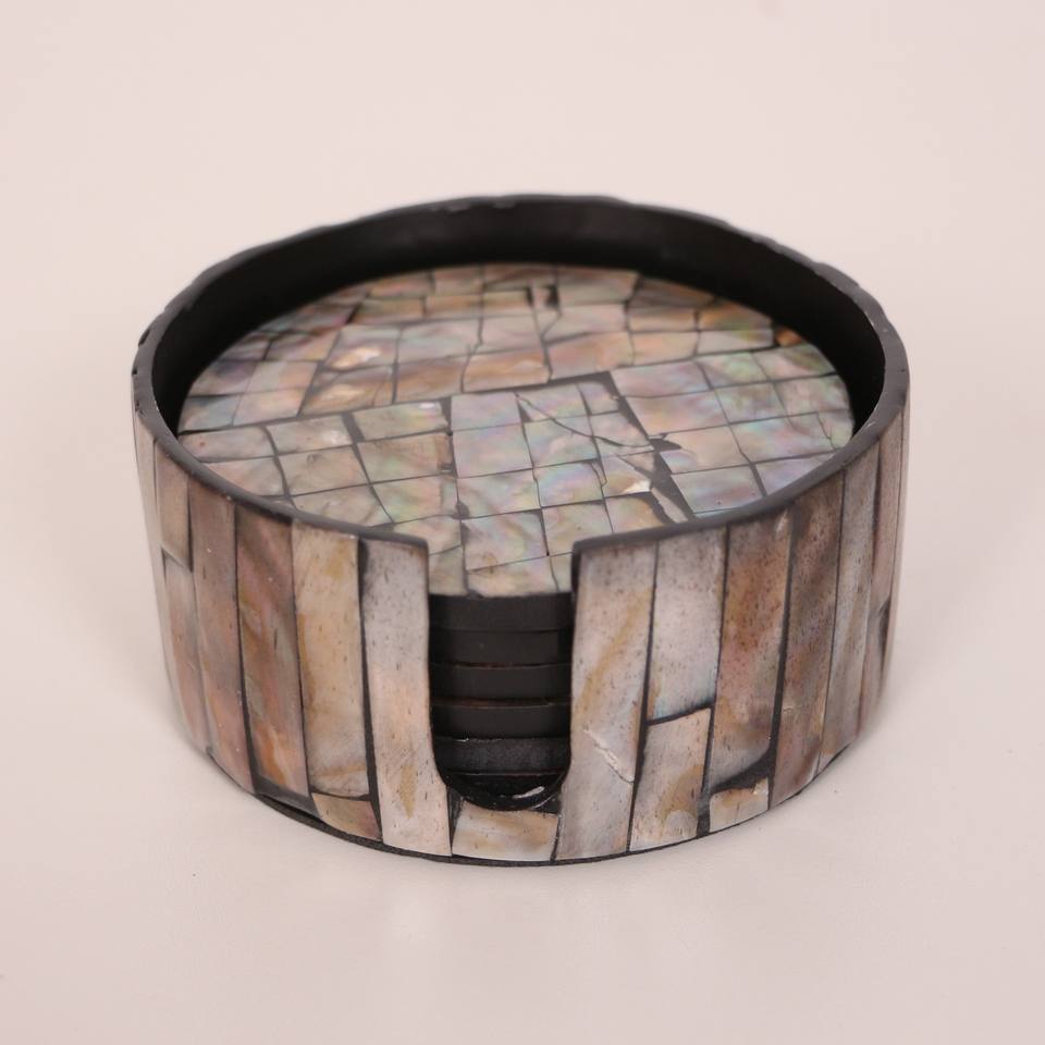ชุดจานรองแก้วโมเสคเปลือกหอยมุกธรรมชาติ 6 ชิ้น งานแฮนด์เมดฝังเปลือกหอยมุก พร้อมกล่อง สำหรับแก้วกาแฟ ชา จากเวียดนาม