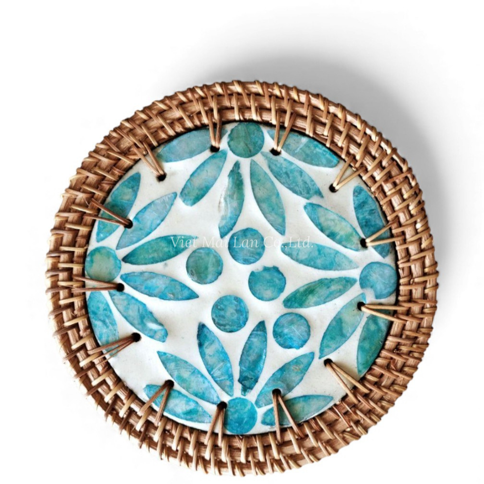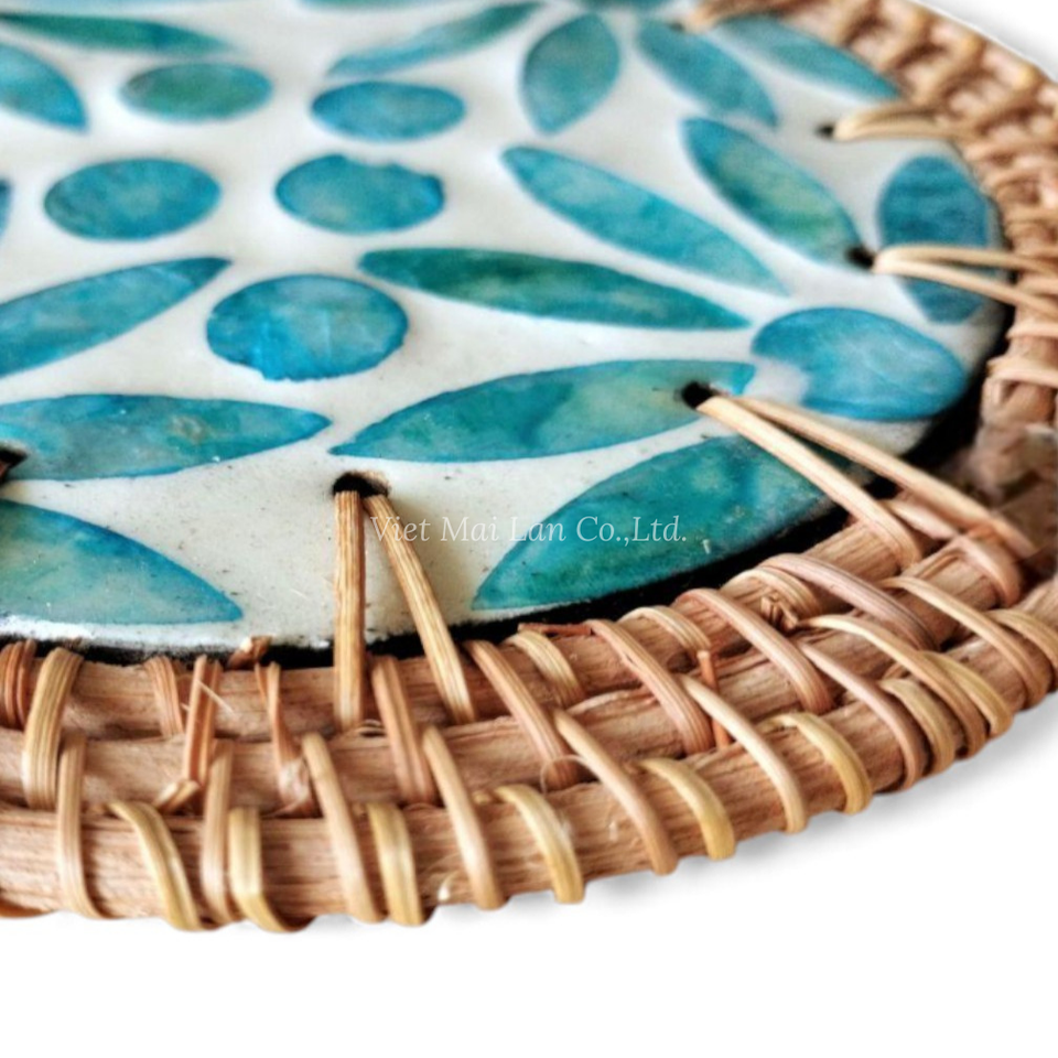 แผ่นรองจานมุกธรรมชาติพร้อมขอบหวายสำหรับการจัดโต๊ะอาหารประจำวันและการตกแต่งบ้านจากเวียดนาม