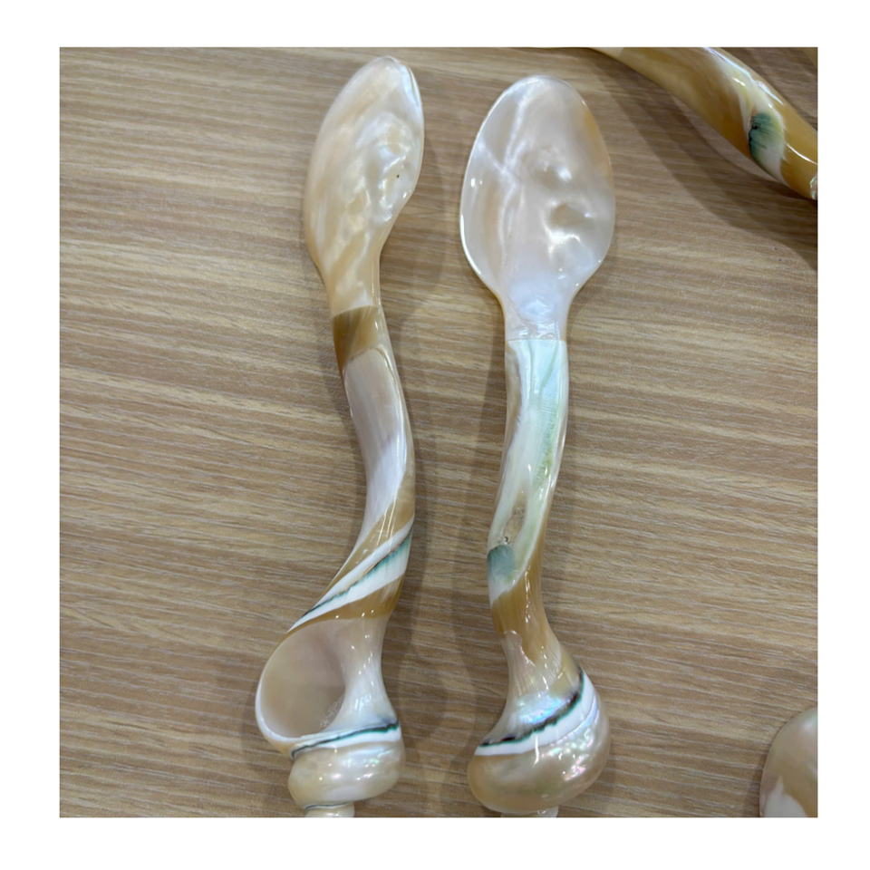 ช้อนเปลือกหอยมุกธรรมชาติ ทำด้วยมือ ด้ามจับเปลือกหอย สวยงามหรูหรา สำหรับรับประทานอาหารที่บ้าน