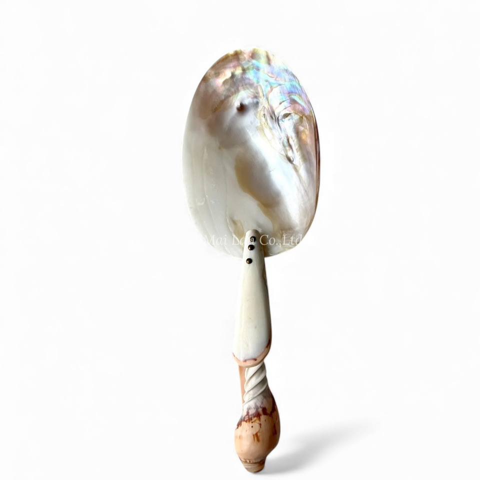 ช้อนมุกธรรมชาติสำหรับของหวาน โยเกิร์ต และคาเวียร์ ผลิตด้วยมือโดยช่างฝีมือในเวียดนาม