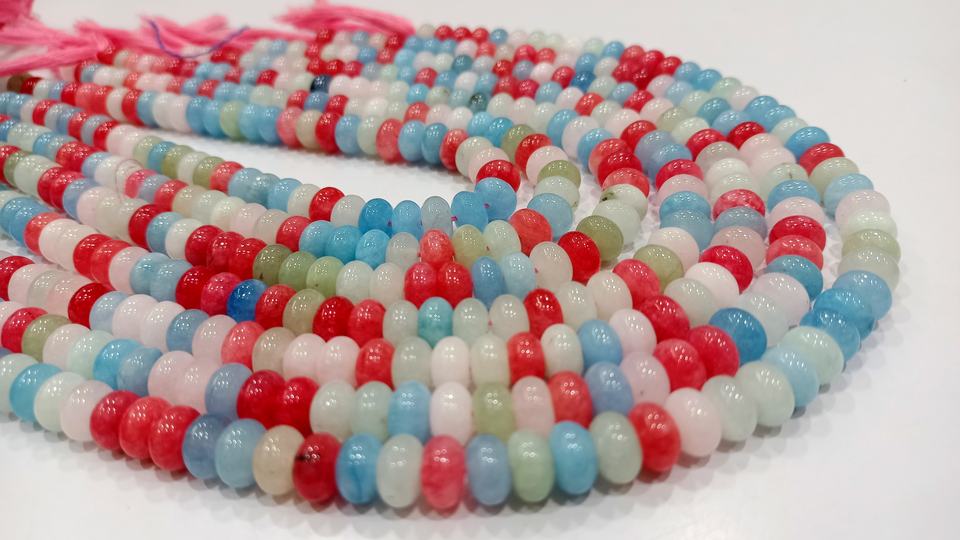 ลูกปัดอัญมณีควอทซ์พลอยสีฟ้าธรรมชาติหลายเม็ดเรียบ8มม. ลูกปัดสำหรับทำเครื่องประดับยาว8นิ้วต่อเส้น