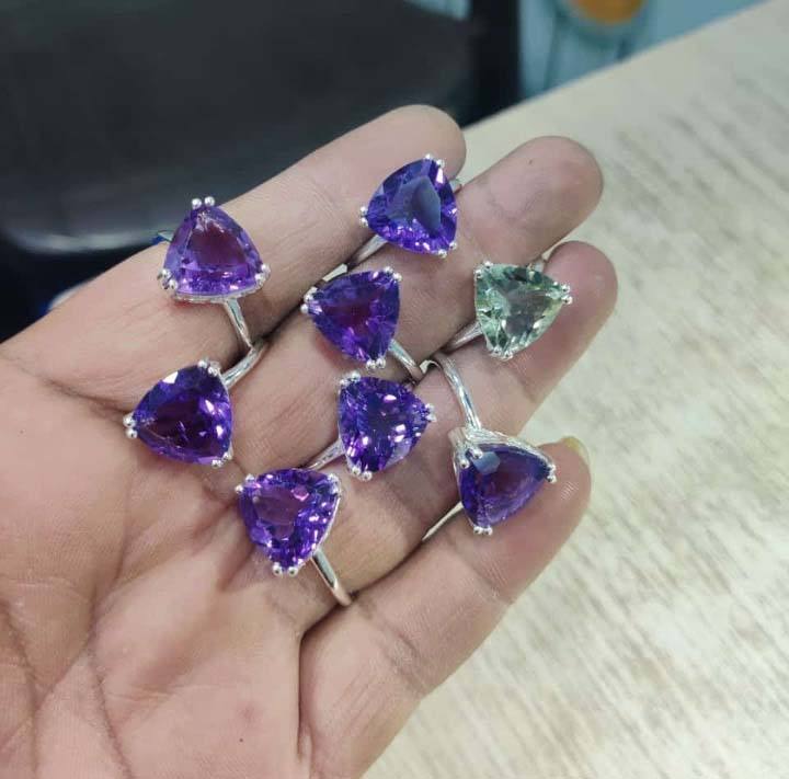 ไฮโดรควอตซ์หลายสีธรรมชาติขนาด10-15มม. เซตวงแหวนผสม925แหวนเงินสเตอร์ลิงเครื่องประดับราคาเป็นจำนวนมากสำหรับเป็นของขวัญ