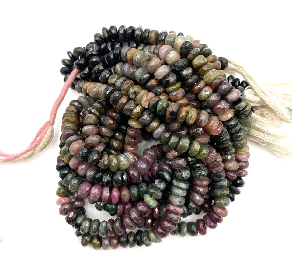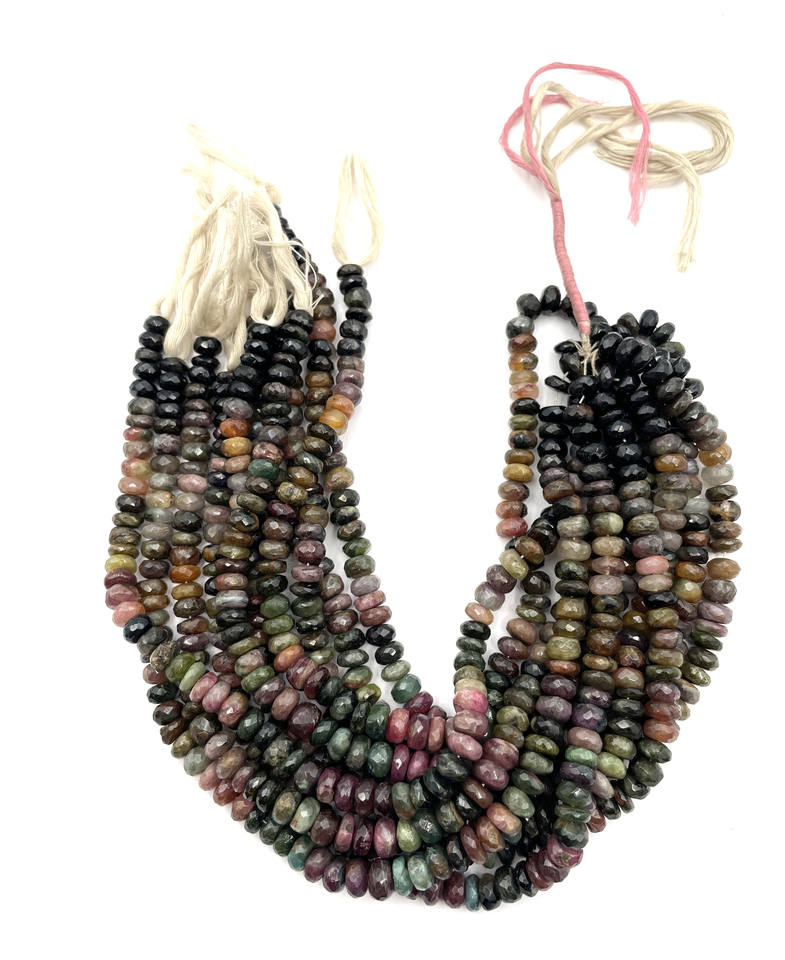 สร้อยคอพลอยทัวร์มาลีนธรรมชาติหลากสีลูกปัดเหลี่ยมเพชรพลอย rondell ขนาด13.50นิ้วพร้อมของขวัญขนาด8.50-9มม. และ225ชิ้น
