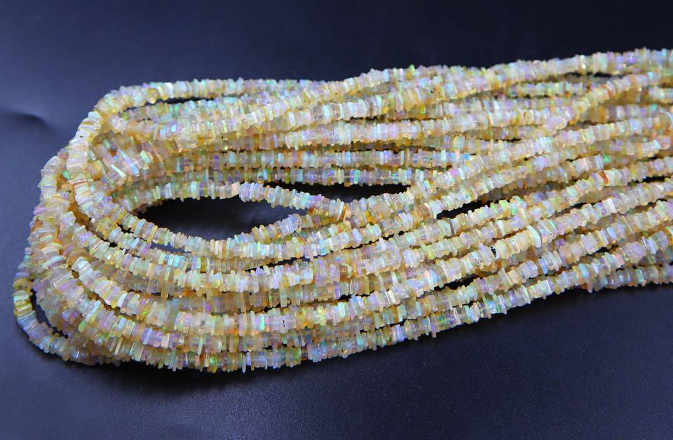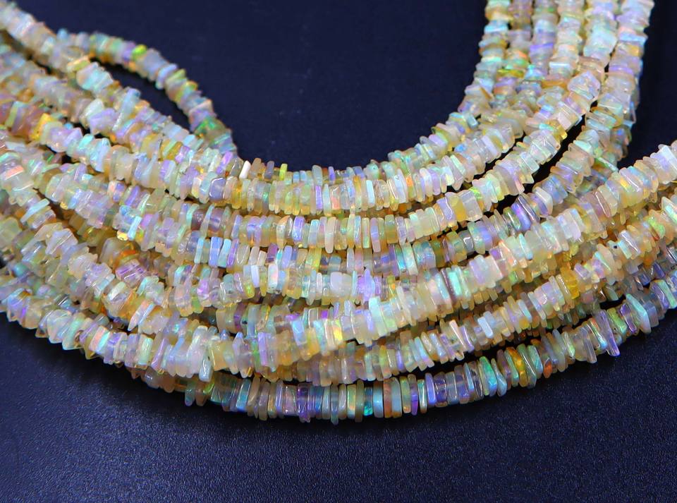 ลูกปัดโอปอลเอธิโอเปียธรรมชาติหลากสี โอปอลไฟหลากสี รูปทรงชิปส์เรียบ ขนาดประมาณ 4 มม. ถึง 3 มม. ความยาว 16 นิ้ว