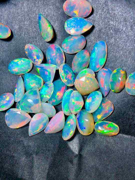 โอปอลเอธิโอเปียธรรมชาติทรงคาโบชอง หลายสี โอปอลเวโลทรงรีขนาดใหญ่ ผ่านการอบความร้อน สีเหลือง สำหรับทำเครื่องประดับ