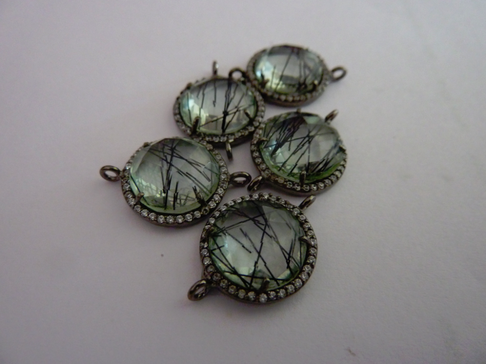 ตัวเชื่อมต่อแบบฝังเพชรคิวบิกเซอร์โคเนียหลากสีธรรมชาติ ชุบโรเดียมดำ เงินสเตอร์ลิง ดีไซน์วินเทจ สำหรับงานแต่งงาน ใช้ได้ทั้งชายและหญิง