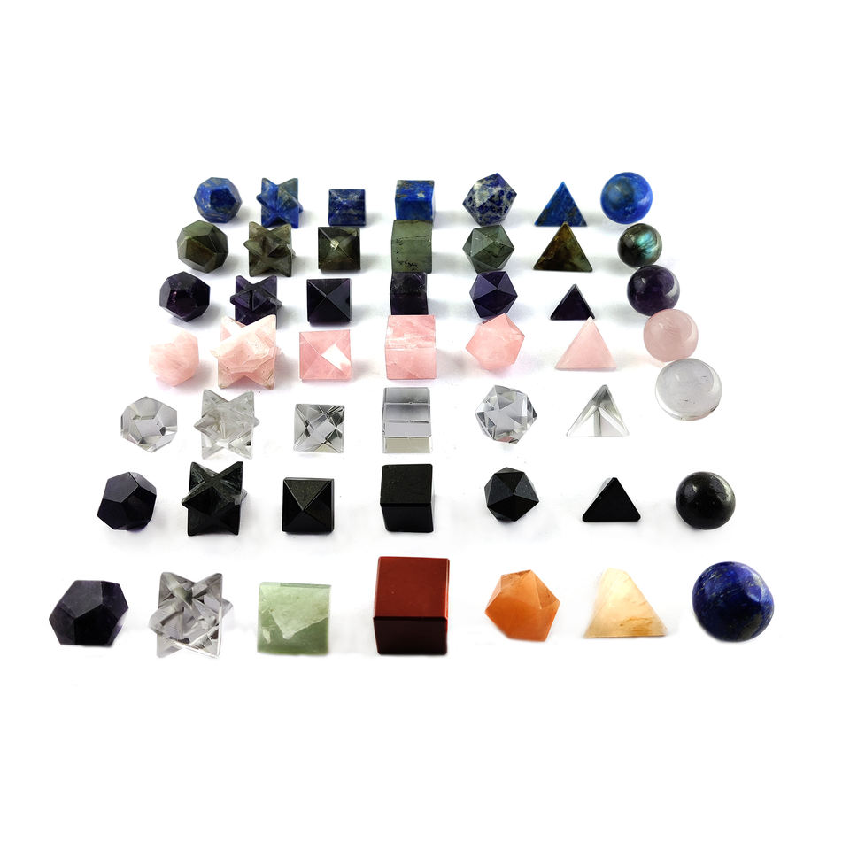 ชุดพลอยหลากสีธรรมชาติของแท้งานหัตถกรรมหินกึ่งมีค่าทรงเรขาคณิตศักดิ์สิทธิ์เรกิเจ็ดชิ้น