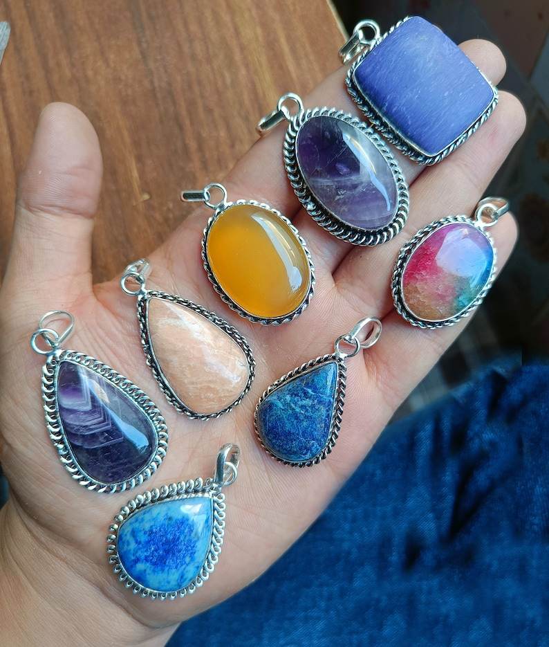 อัญมณีหลายแบบตามธรรมชาติลูกปัดอัญมณีขัดเงาแบบหลวมจี้อัญมณี925ทึบชุบเงินแท้