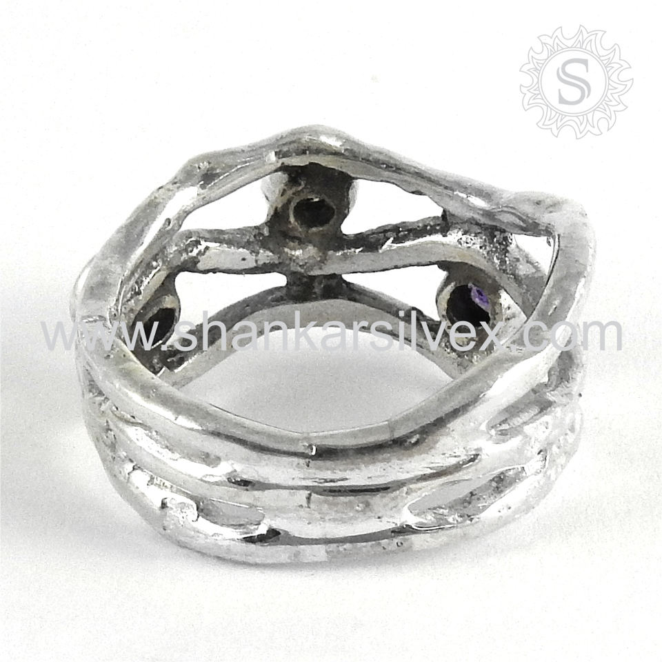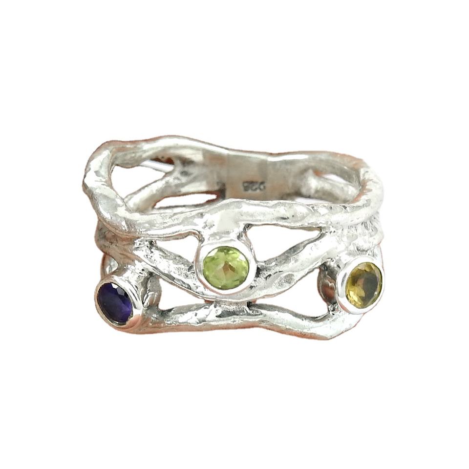 แหวนพลอยหลายเม็ดตามธรรมชาติหรูหรา925เงินสเตอร์ลิงเครื่องประดับแฮนด์เมดของขวัญดีไซน์เนอร์สำหรับผู้หญิงและเด็กผู้หญิง