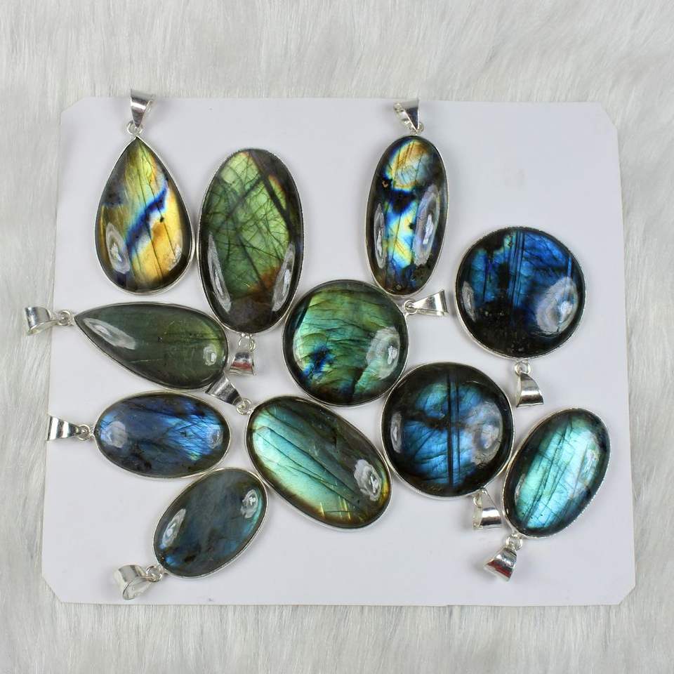 Multi labradorite silver plated pendants