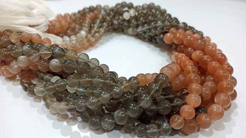 หินมูนสโตนธรรมชาติหลายเม็ดกลมเรียบ5ถึง12มม. ขายต่อเส้นยาว7นิ้ว