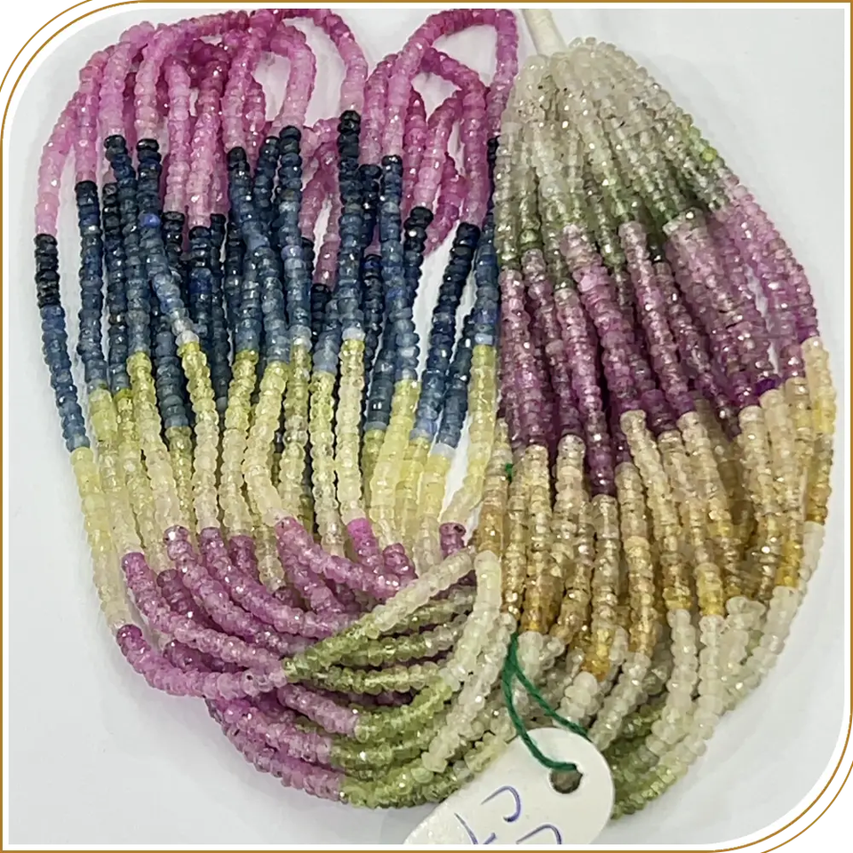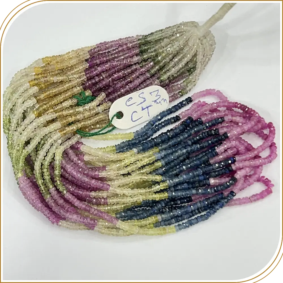 ลูกปัดแซฟไฟร์ธรรมชาติทรงรอนเดลเหลี่ยมเพชรพลอย ขนาด 3 มม. ความยาว 14 นิ้ว สำหรับทำเครื่องประดับ