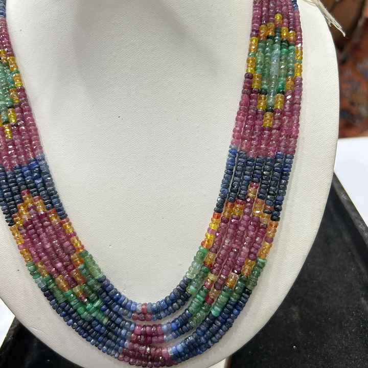 สร้อยคอพลอยไพลินหลากสีธรรมชาติ, สร้อยคอพลอยไพลินหลากสีคุณภาพ AAA ขนาด 3-4 มม. รูปทรงรอนเดลล์เจียระไน 7 เส้น