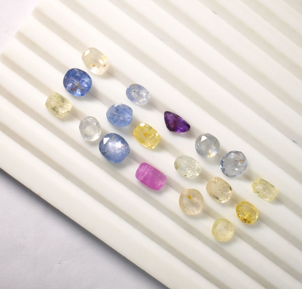 แซฟไฟร์ธรรมชาติหลายสี ขายส่ง น้ำหนักรวม 36.05 กะรัต ชุด 18 ชิ้น แซฟไฟร์ไม่ผ่านการอบความร้อนและไม่ผ่านการปรับแต่ง