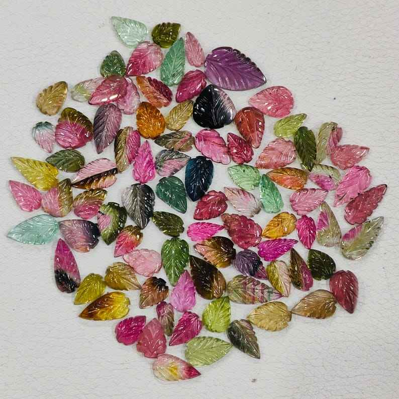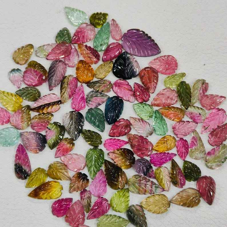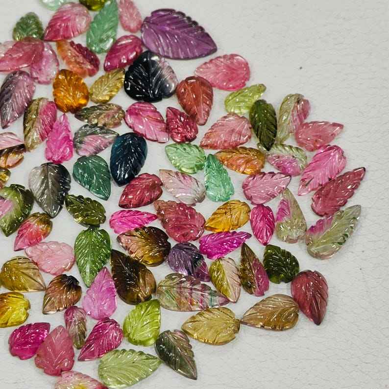 อัญมณีแกะสลักรูปใบทัวร์มาลีนธรรมชาติ10ชิ้นอัญมณีแกะสลักด้วยมืออัญมณีหลวมสำหรับทำเครื่องประดับของขวัญ