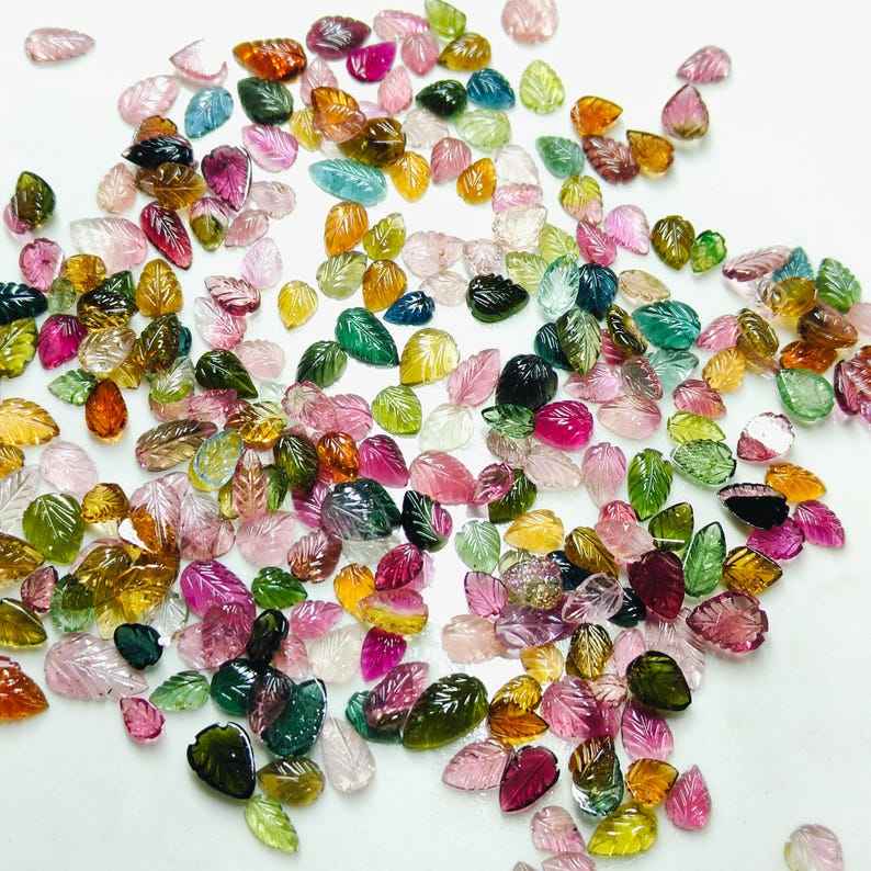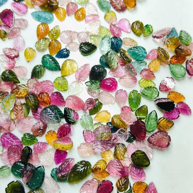 ชุดแกะสลักใบทัวร์มาลีนแบบธรรมชาติ20ชิ้นแผ่นหลังแบนขนาด7มม. ถึง8มม. เป็นของขวัญทัวร์มาลีนแท้สำหรับการทำเครื่องประดับของเธอ
