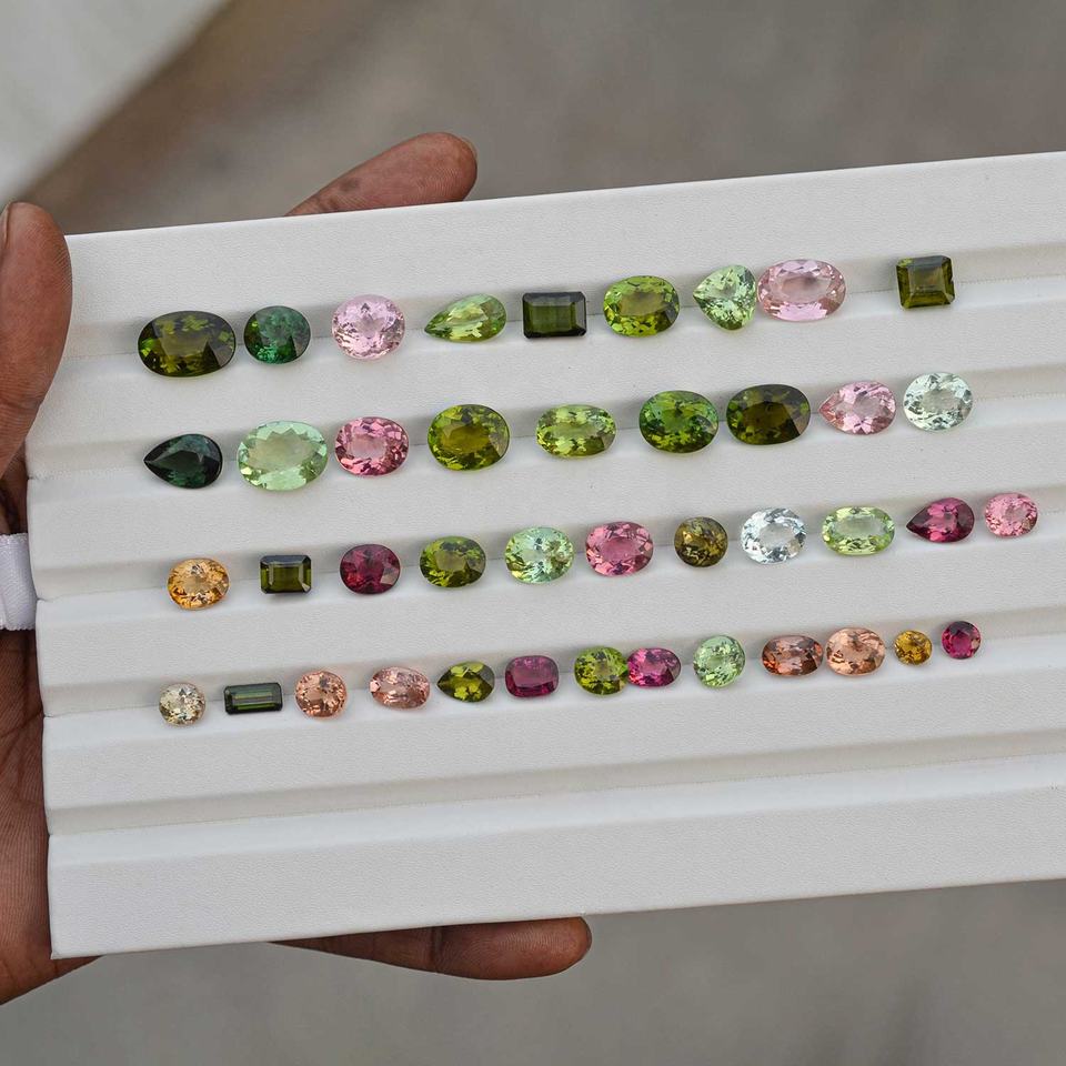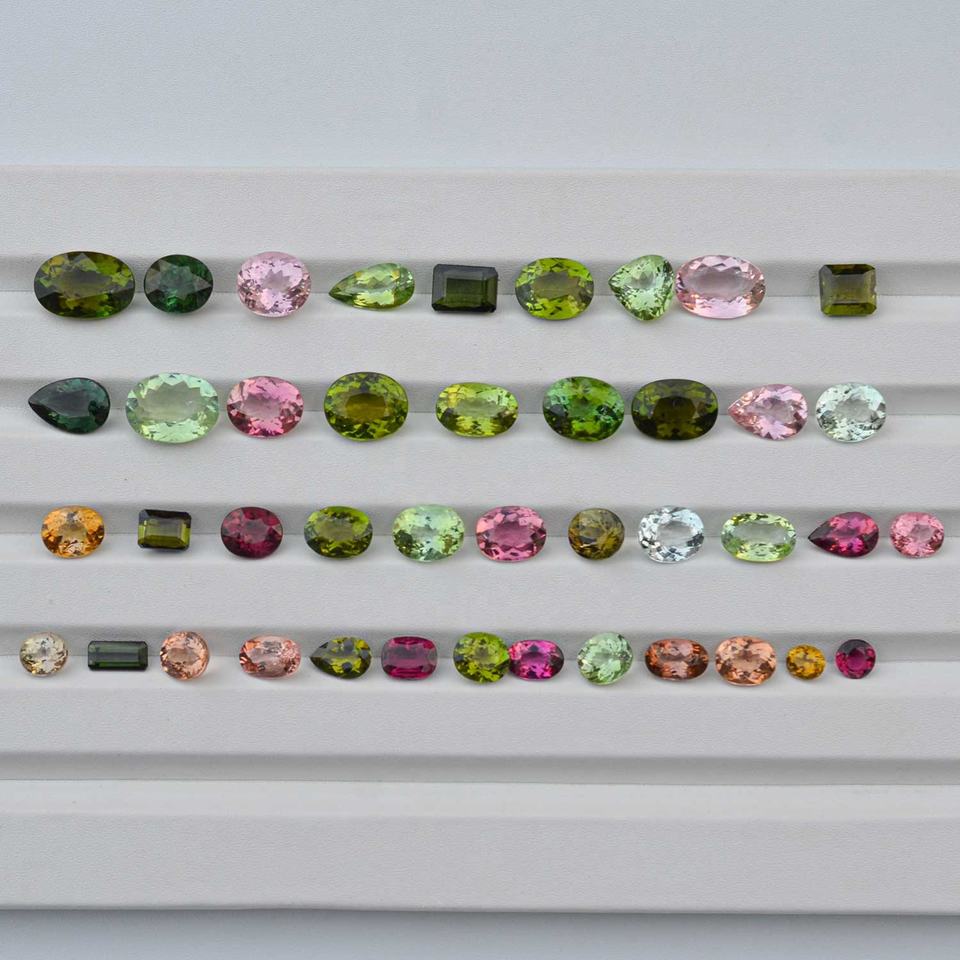 พลอยทัวร์มาลีนธรรมชาติหลายสี รูปทรงผสม น้ำหนักประมาณ 2-5 กะรัต สีและความเงางามดีเยี่ยม จากเหมืองคองโก