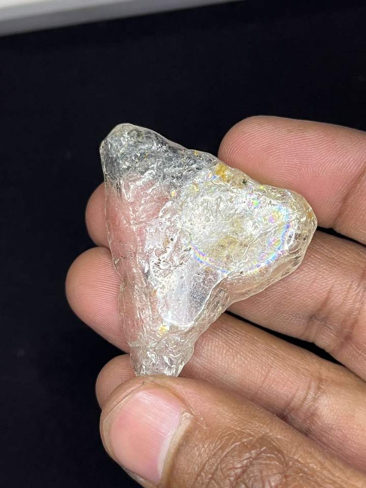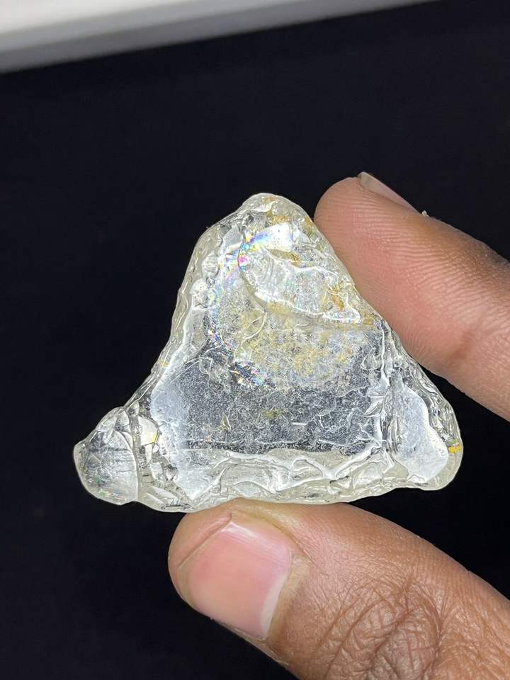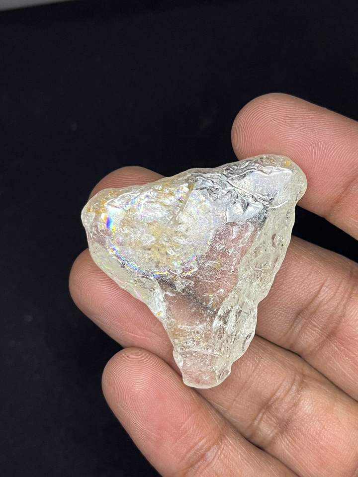 พลอยโทแพซธรรมชาติทรงสามเหลี่ยมเจียระไนขัดเงาพร้อมเอฟเฟกต์ไดโครอิก น้ำหนัก 100 กะรัตขึ้นไป