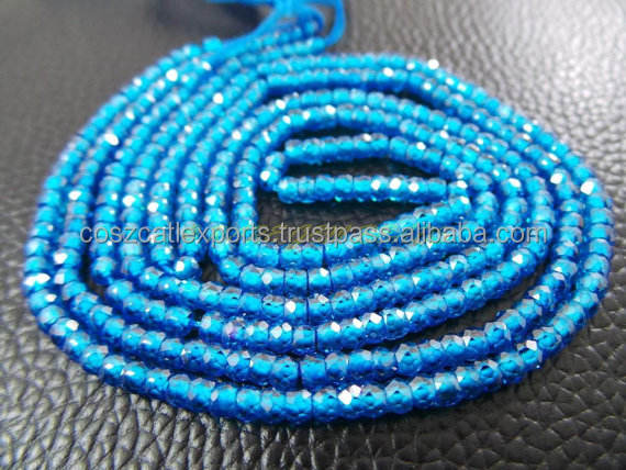 ลูกปัดเพทายสีน้ำเงินนีออนธรรมชาติทรงรอนเดลเหลี่ยมเพชร 3 มม. สำหรับทำเครื่องประดับ คริสตัลหินบำบัด ได้รับการรับรองจากผู้ที่สาม Coszcalt