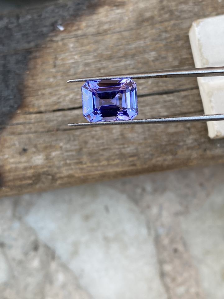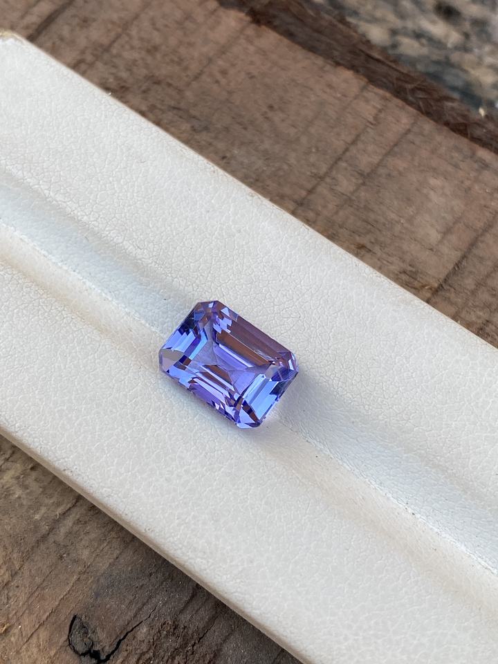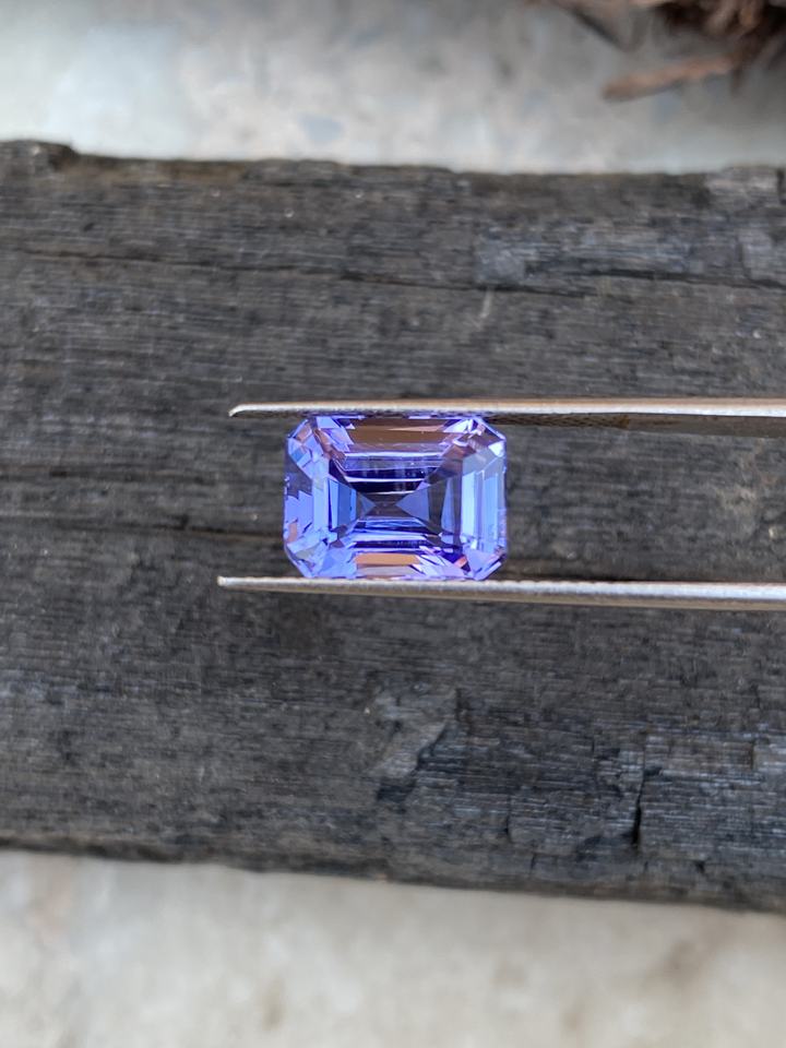พลอยแทนซาไนต์สีธรรมชาติแบบไม่ผ่านความร้อน ทรงเหลี่ยมแบบ Emerald Cut สีสวยงาม 5.00 กะรัต พร้อมพลอยโซไซต์ แบบเม็ดเดี่ยว สะอาดด้วยเลนส์ขยาย