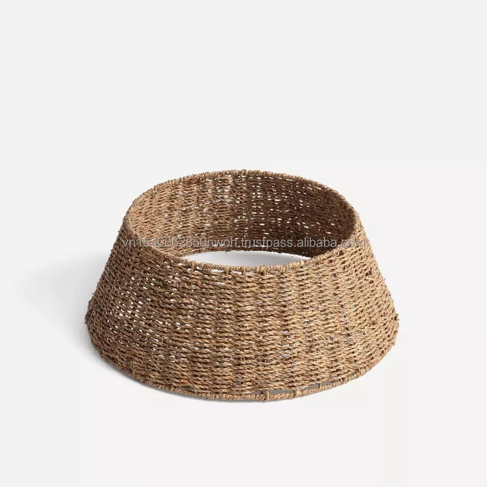 กระโปรงต้นคริสต์มาสทำจากหญ้าทะเลธรรมชาติ ของตกแต่งต้นคริสต์มาส ตะกร้าคริสต์มาส ของตกแต่งสไตล์โบโฮสำหรับห้องนั่งเล่น