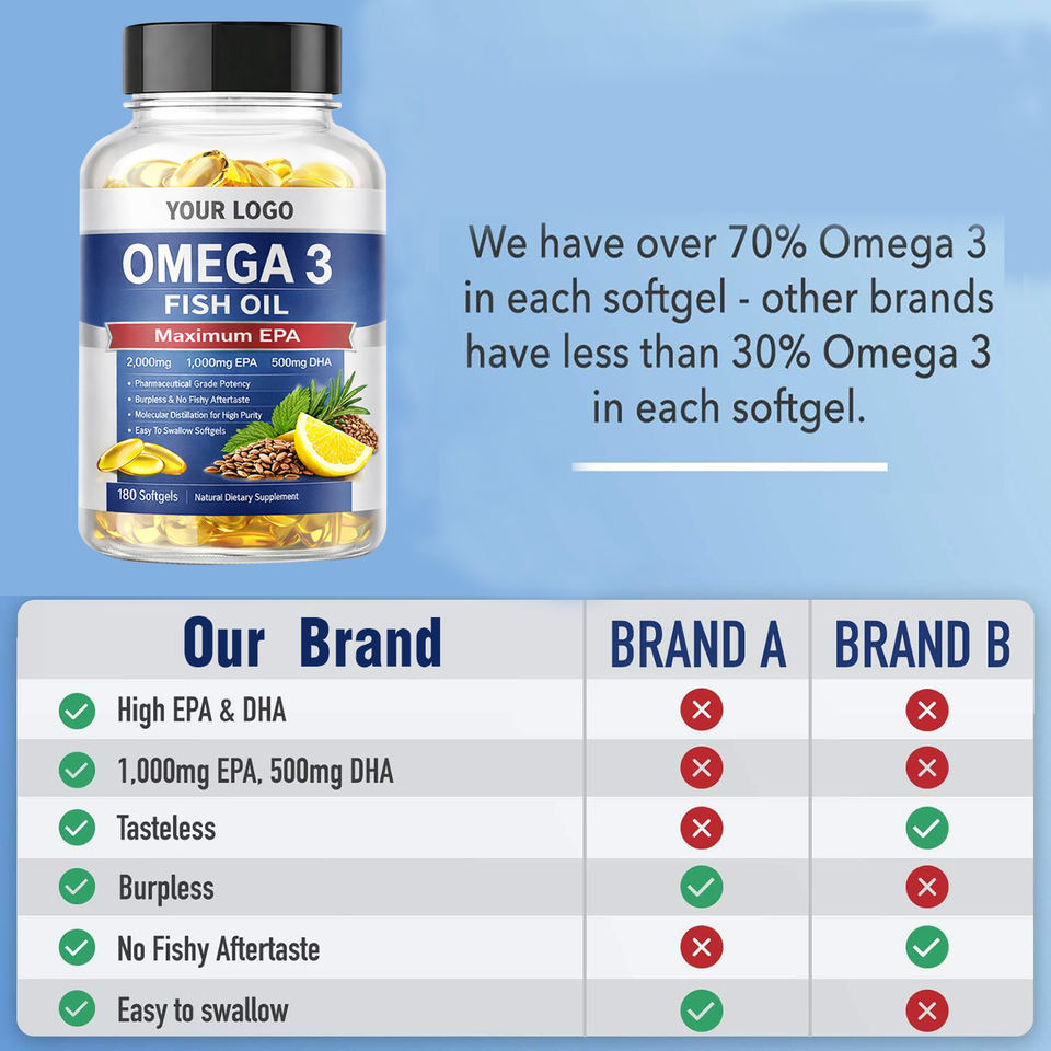Natural Omega 3 Fish Oil Softgel Capsule for Adult Heart Brain and Eye Support Private Label OEM